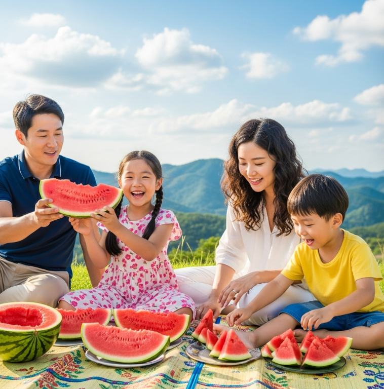 더운 여름하면 제일 먼저 떠오르는 과일이 무엇인지 아세요? 바로 시원하고 달콤한 수박이죠! 수박은 90% 이상이 수분으로 이루어져 있어 갈증 해소에도 좋고, 리코펜 성분이 풍부해서 우리 몸에도 아주 좋답니다. 보기만 해도 시원해지는 빨간 과육과 검은 줄무늬 껍질은 보는 즐거움까지 선사해주죠. 이런 매력 때문에 여름철이면 수박 없이는 못 산다는 분들이 정말 많아요.